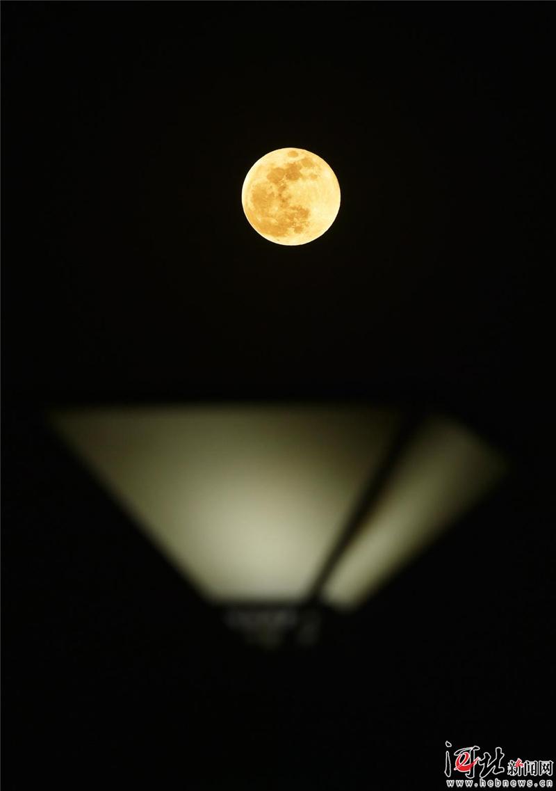 1月21日18時(shí)許,“超級(jí)月亮”出現(xiàn)在石家莊的夜空。