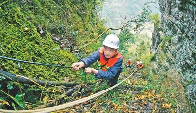圖為日前電信工人在湖北西部山區(qū)攀爬前往山頂建設(shè)通信鐵塔。據(jù)了解,地處湖北西部的恩施土家族苗族自治州宣恩縣山高林密,一段時(shí)間通信不暢。近年來(lái),該縣積極加密通信傳輸基站建設(shè),目前已在山區(qū)建設(shè)通信鐵塔1000余座。