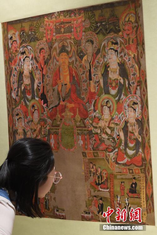4月23日,90余幅敦煌莫高窟藏經(jīng)洞流失海外書畫文物復(fù)制品在蘭州西北師范大學(xué)展出吸引民眾。這些書畫復(fù)制品內(nèi)容選自英國大英博物館、法國國家圖書館、美國哈佛大學(xué)圖書館、日本龍谷大學(xué)圖書館,包括有唐、五代、北宋敦煌藏經(jīng)洞的紙本和絹本的書畫作品90余幅,作品均為原大小原色復(fù)制。