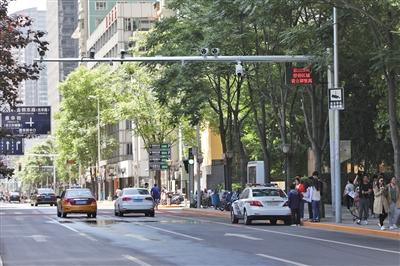 CBD西北區(qū)的交通綜合治理是一個系統(tǒng)工程。祖綱介紹,除了治理路側(cè)違停,還通過建智能斑馬線、整修人行道、設(shè)自行車停車位等方式,優(yōu)化慢行系統(tǒng);利用智慧交通技術(shù),根據(jù)車流量特點(diǎn)智能調(diào)控區(qū)域內(nèi)的紅綠燈;撤除道路隔離護(hù)欄,架空線全部入地等措施改善環(huán)境景觀。
