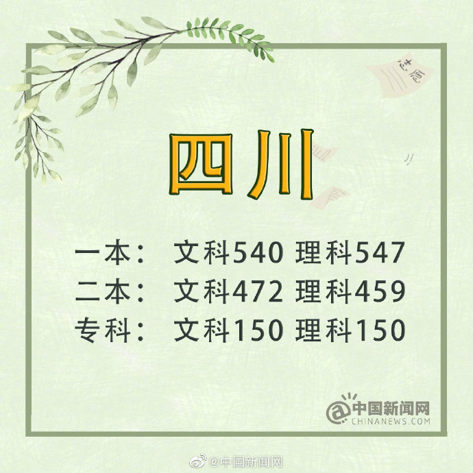 四川:文科一本540分 理科一本547分