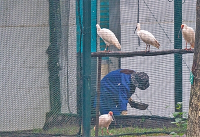 段英擔(dān)任飼養(yǎng)員20多年了,她還記得第一次接近朱鹮時(shí)的害怕,“朱鹮嘴很長(zhǎng),翅膀很大,不高興了會(huì)啄人、扇人。”