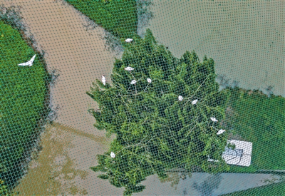 在朱鹮生態(tài)園的大網(wǎng)籠中,放置了若干個(gè)小籠舍,這些是“情侶套房”,方便人工撮合的朱鹮伴侶們溝通感情。